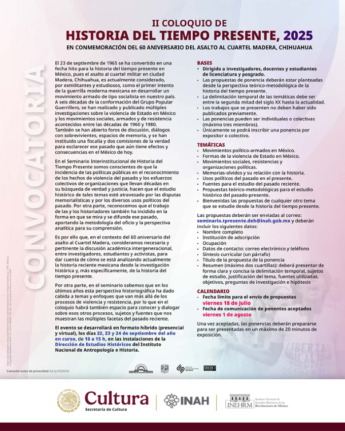 INSTITUTO NACIONAL DE ANTROPOLOGÍA E HISTORIA DIRECCIÓN DE ESTUDIOS HISTÓRICOS SEMINARIO DE MOVIMIENTOS SOCIALES. MEMORIA E HISTORIA DEL TIEMPO PRESENTE, CICLO 2025