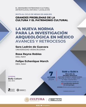 INSTITUTO NACIONAL DE ANTROPOLOGÍA E HISTORIA DIRECCIÓN DE ESTUDIOS HISTÓRICOS SEMINARIO PATRIMONIO CULTURAL. ANTROPOLOGÍA, HISTORIA Y LEGISLACIÓN Invitan al ciclo de mesas de análisis: GRANDES PROBLEMAS DE LA