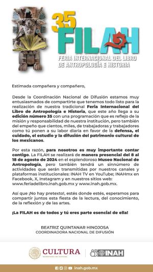 35 FILAH FERIA INTERNACIONAL DEL LIBRO DE ANTROPOLOGÍA E HISTORIA Invitados: Belice y Quintana Roo en la #35FILAH del 8 al 18 de