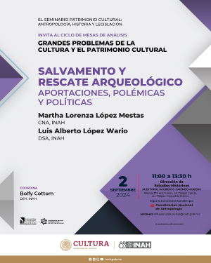 INSTITUTO NACIONAL DE ANTROPOLOGÍA E HISTORIA DIRECCIÓN DE ESTUDIOS HISTÓRICOS SEMINARIO PATRIMONIO CULTURAL. ANTROPOLOGÍA, HISTORIA Y LEGISLACIÓN Invitan al ciclo de mesas de análisis: GRANDES PROBLEMAS DE LA