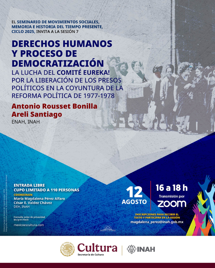INSTITUTO NACIONAL DE ANTROPOLOGÍA E HISTORIA DIRECCIÓN DE ESTUDIOS HISTÓRICOS SEMINARIO DE MOVIMIENTOS SOCIALES. MEMORIA E HISTORIA DEL TIEMPO PRESENTE, CICLO 2025 Invitan a la sesión virtual número 7 DERECHOS HUMANOS Y PROCESO DE