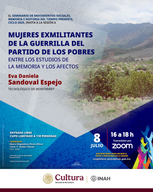 INSTITUTO NACIONAL DE ANTROPOLOGÍA E HISTORIA DIRECCIÓN DE ESTUDIOS HISTÓRICOS SEMINARIO DE MOVIMIENTOS SOCIALES. MEMORIA E HISTORIA DEL TIEMPO PRESENTE, CICLO 2025 Invitan a la sesión virtual número 6 MUJERES EXMILITANTES DE LA GUERRILLA